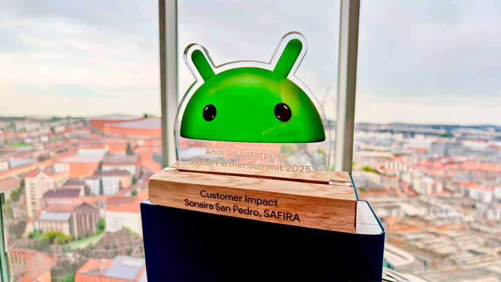 A SAFIRA foi reconhecida pelo Google com o Android Enterprise Customer Impact Award, prêmio concedido a empresas que demonstram impacto real e mensurável na operação de seus clientes por meio do ecossistema Android Enterprise.